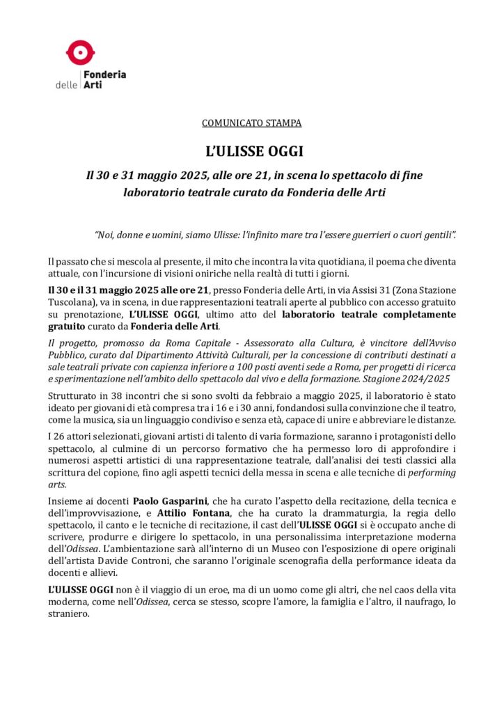 COMUNICATO STAMPA, L’ULISSE OGGI